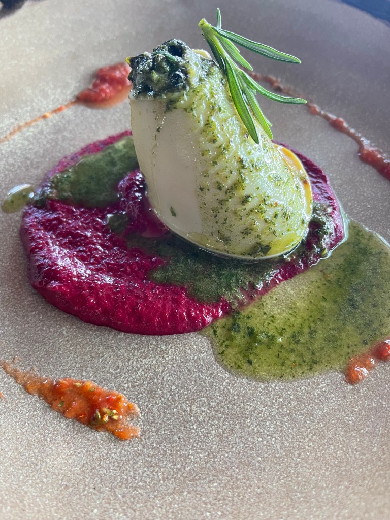 We headed back to The Vines of Mendoza where we are staying and were off to our first tasting experience. Boy were we in for a surprise! When we arrived we gave our name and a couple that would join us on the tour of the winery, Gimenez Rilli, recognized our name as they have enjoyed Penner-Ash wines for many years and had lived in Oregon at one point. We had a nice walk thru the very rocky vineyards and then were seated for our lunch/tasting. Little did we know this experience would take well over 3.5 hours! Ron was getting hungry and the pace of the food and wine delivery was not the most efficient! Yet again we were served a very large piece of beef with the obligatory potatoes and beet root. We are noticing a theme here! Though the presentation of the calamari did make me laugh!